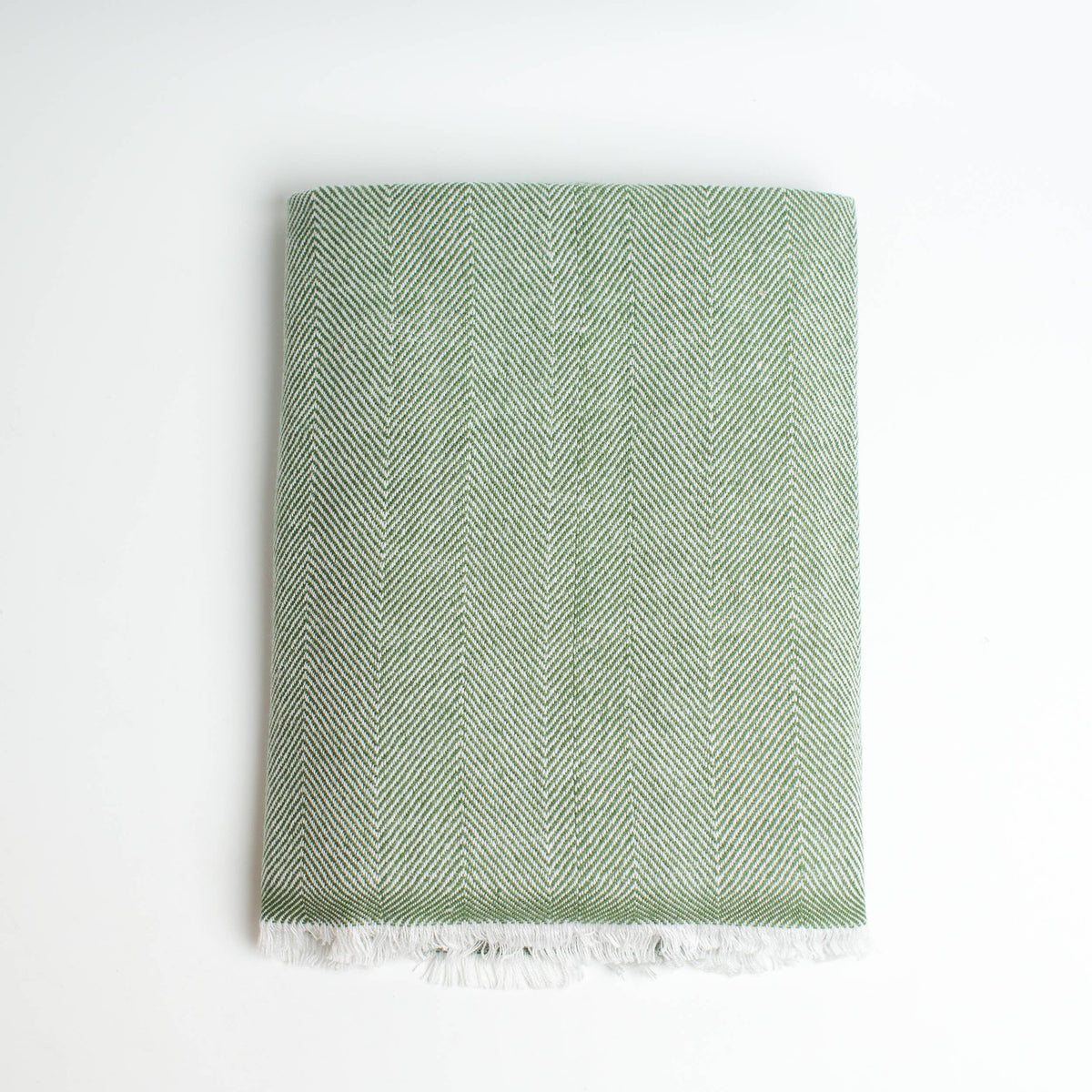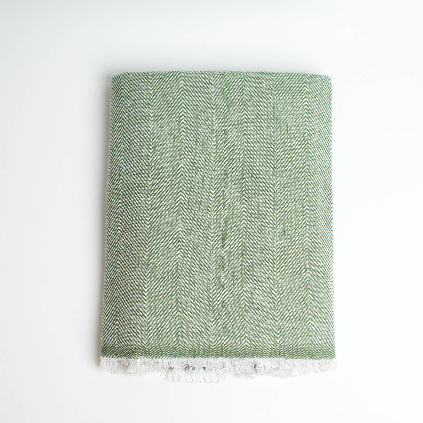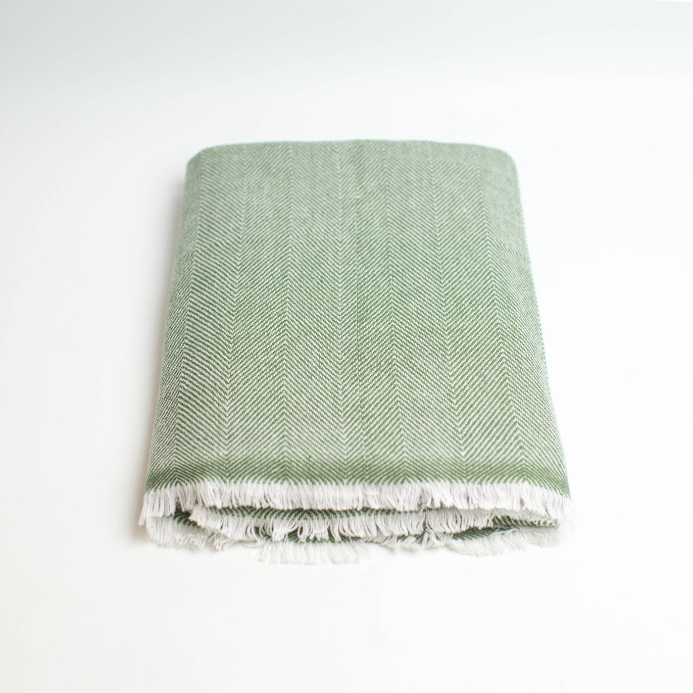 Art Himalayan Trading Reversible Cashmere Wool Throw Blanket / Herringbone Pattern / Green & White