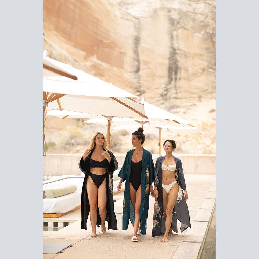Lightweight yet refined, it’s perfect for layering or lounging, whether at home or outdoors. Finished with French seams, side slits, and a removable waist tie with inside ties, it’s as practical as it is beautiful. A versatile piece of wearable elegance, this robe makes every moment feel special.