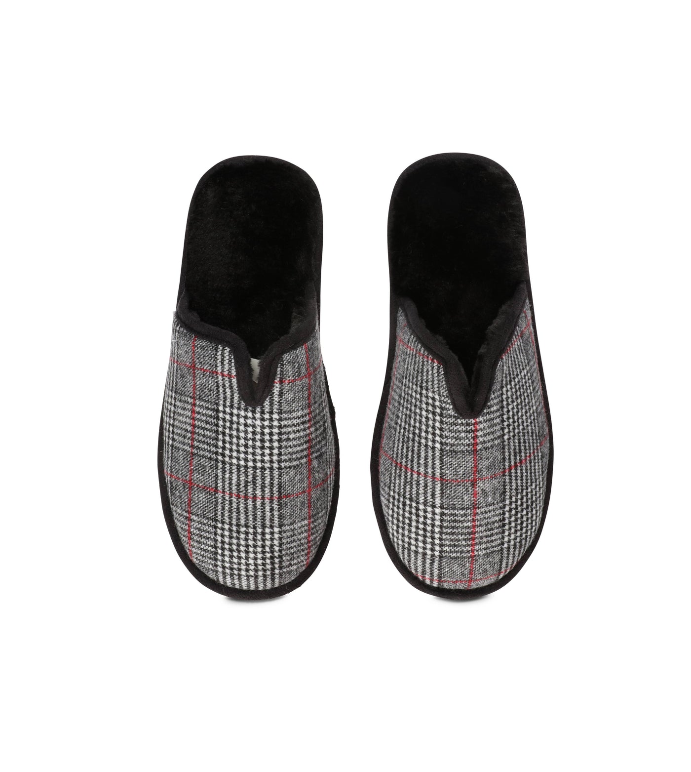 MeMoí Men's Glen Plaid Memory Foam Mule Slippers - Black / SM