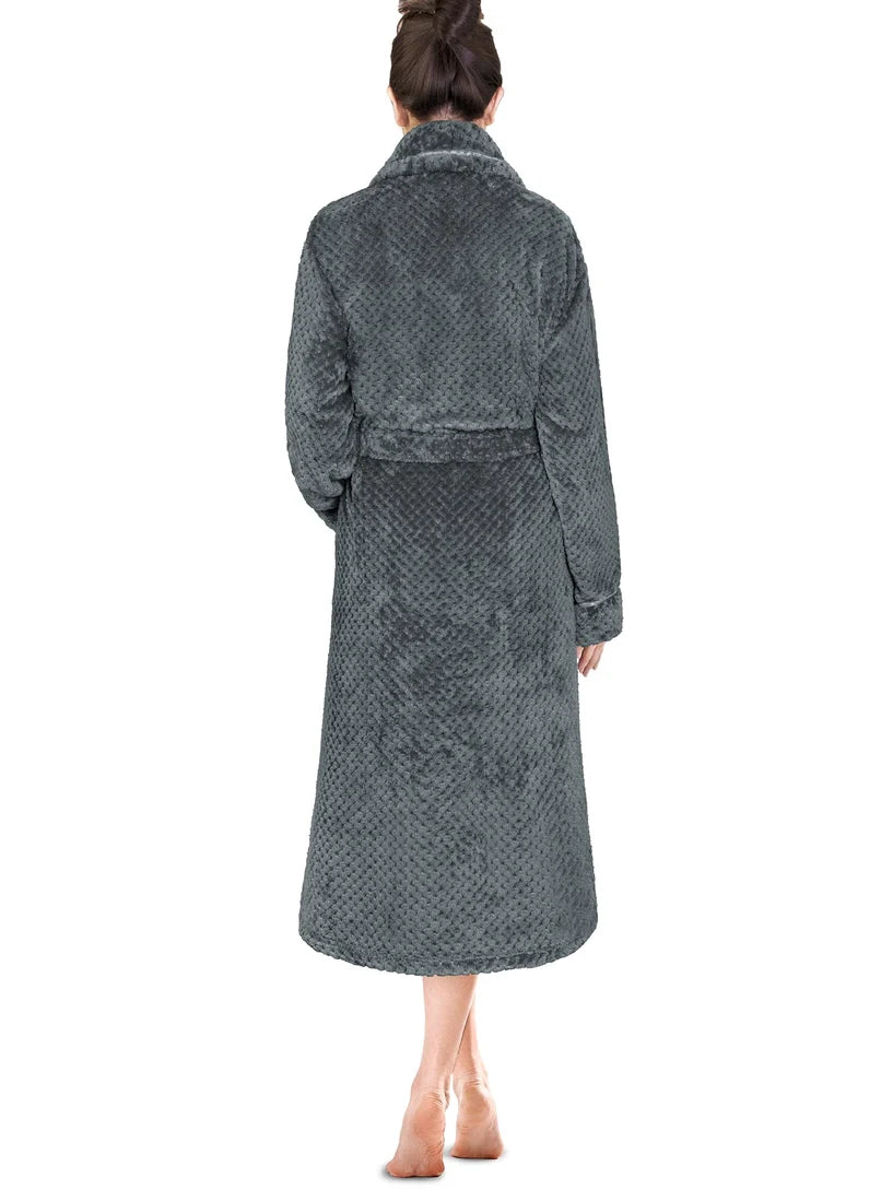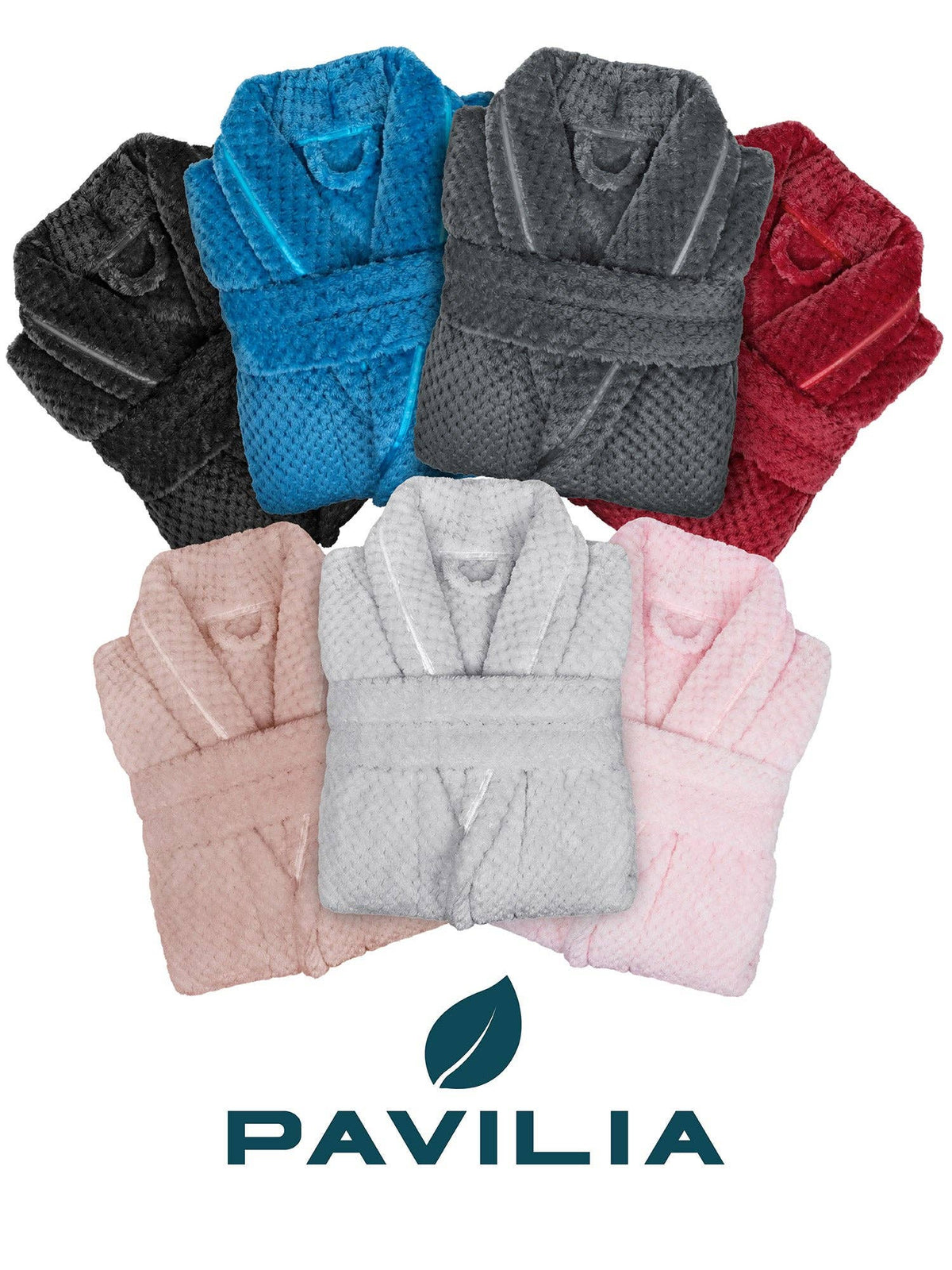 Pavilia Waffle Textured Satin Trim Fleece Women's Robe